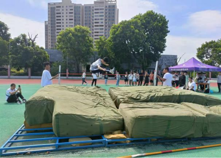 你腾空跃起,似鹰击长空,在空中画出一道景天长虹,鲜花为你绽放,彩旗为你飘扬,每一次助跑都如同离弦之箭气势汹涌,这一刻,所有的光荣,都镌刻着挥洒汗水的印记。