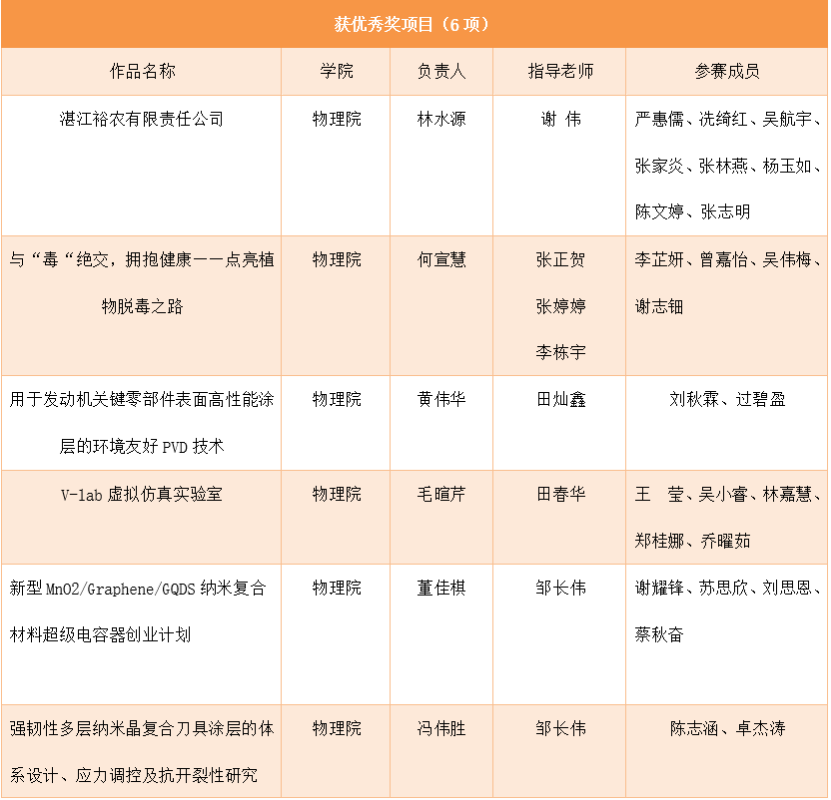 物理学院学生在2022年岭南师范学院“挑战杯”大学生创业计划竞赛中获得金奖3项,铜奖4项,优秀奖6项,共计13项。