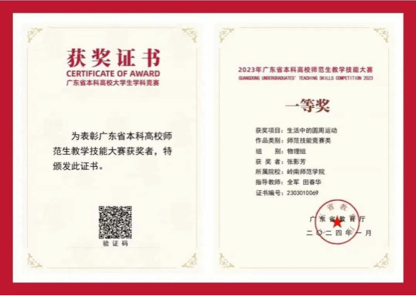 田春华教授指导学生广东省本科高校大学生学科竞赛获奖