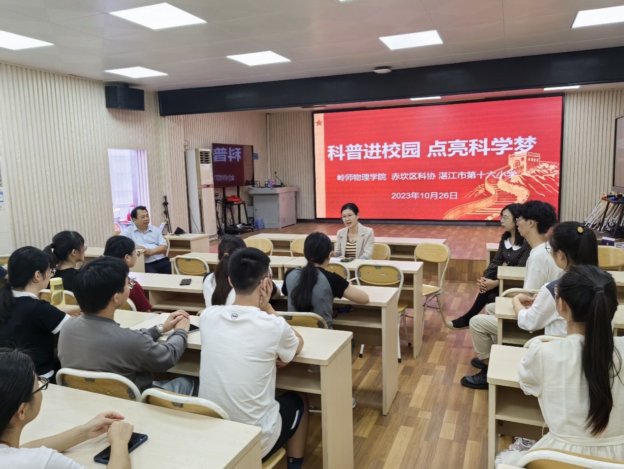 为了学院科学教育专业实习情况,帮助和解决学生实习困难,10月26日至27日,物理学院党委陈碧琼书记、梁伟民副书记、熊佰练、周颖怡老师一行分别到湛江市第十六小学、第十九小学走访看望实习生。在这次走访中,学院领导老师与实习学校领导、指导教师进行交流座谈,探讨教育实习基地建设,并对在校教育实习生进行慰问。