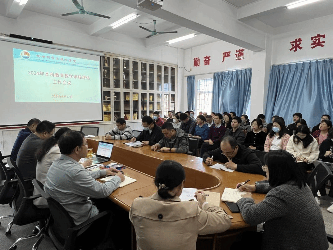 为进一步做好学校本科教育教学审核评估工作,近日,物理学院于榕芳楼309室召开教职工大会,阐明下一阶段学院教育教学审核评估的重点工作,全体教职工参加,学院党委书记陈碧琼主持。