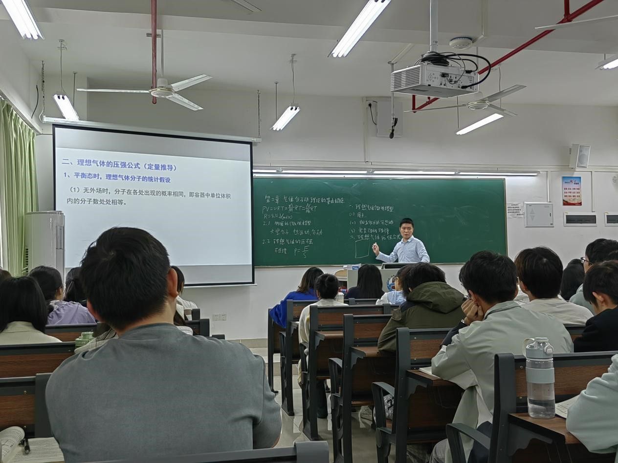 苏古发副校长听取了蓝善权老师的《热学》课程。从听课整体情况看,授课教师备课认真,充分融入思政元素,课件图文并茂、丰富生动,讲述深入浅出,与学生的互动良好;学生精力集中、思维活跃,课堂教学井然有序。