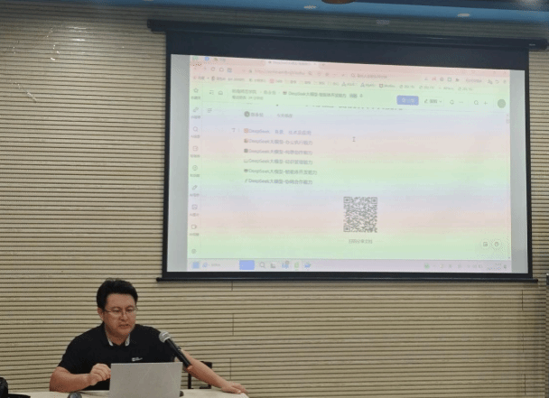 陈永恒教授以“DeepSeek:背景、技术以及应用”为主题开展专题讲座。他从AI大模型的发展脉络、核心技术原理切入,紧密结合教育教学实际场景,系统阐释了AI技术在课前备课、课中互动、课后拓展全流程的应用价值与实施路径,为在场教师搭建起技术与教学融合的认知框架。