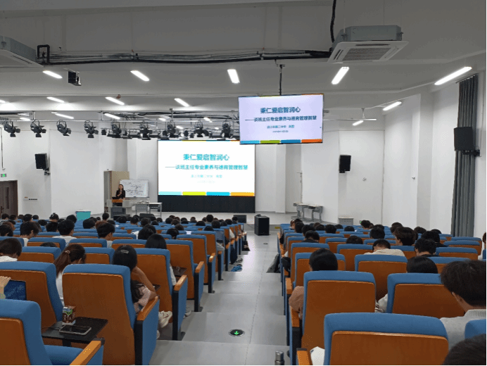 在班主任经验分享讲座上,高雯老师以《秉仁爱启智润心——谈班主任专业素养与德育管理智慧》为题,运用鲜活案例系统地阐释了班主任工作的核心要义与行为准则,强调立德树人的根本任务与因材施教的实践路径。她围绕“班主任的角色定位与主要素养”进行深入解析,指出班主任应具备高尚品格与情怀、扎实专业与广博知识,并对班级生态建构、个体心灵关怀、家校社协同、安全教育与危机处理等职责进行系统梳理。高老师还对2021年发布的中小学“五项管理”文件精神作深入解读,帮助见习生厘清新时代班主任工作的任务清单。在交流环节中,高老师耐心细致地解答学生疑问,现场气氛热烈。