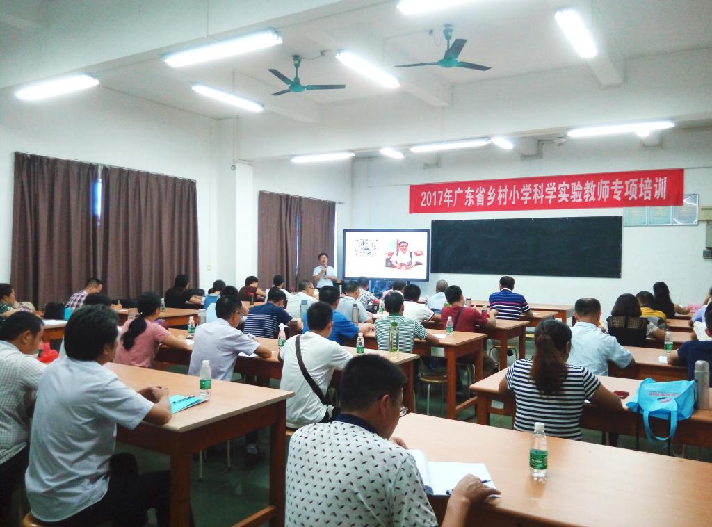 9月17日早上, 2017年广东省中小学教师素质强化工程—乡村小学科学实验老师专项培训开班典礼如期在岭南师范学院举行。本次专项培训旨在加强小学科学教师的职业素养,提升执教能力和执教艺术。
