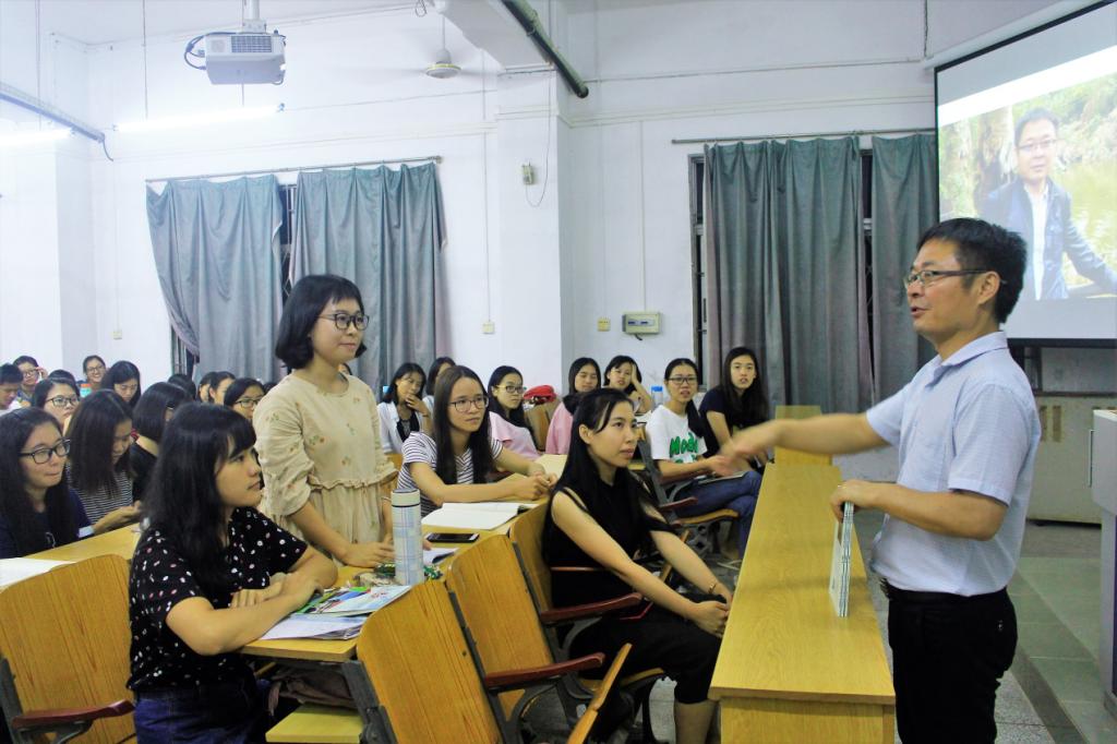 9月17日晚,东莞市中小学名师蔡敏胜在物理楼302作《致未来教师——教师的专业成长与幸福人生》分享会,从自身专业的建设、教学经历的变化、关键事件的影响、价值追求的形成四方面,为在座科学教育专业的师范生生动讲解教师之道。