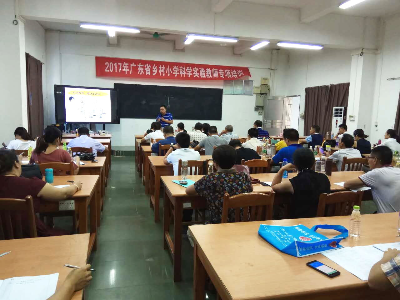 9月18日上午,广西师范大学陈海深副教授于榕芳楼403为培训学员开设了主题为《系列趣味浮沉子探究及创意开发与设计》的实验课。