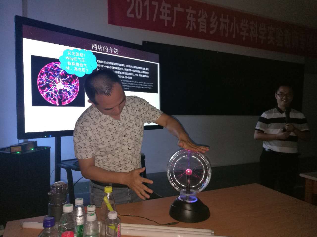以此为中心,黄老师重点培训如何换位思考,让培训老师站在学生的角度去学习科学,通过科学引导学生了解科学。黄老师带领学员了解当今很火热的创客空间,学员们对此也非常有兴趣。为了让学员感受到科学的魅力,黄老师现场请学员们进行实验,现场反应热烈。