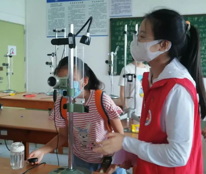 在实操环节,党员志愿者通过单摆测重力加速度的实验,讲解实验原理、操作过程和数据处理,让中学生动手操作实验,感受物理实验的魅力和乐趣,亲身体验了小小物理学家的兴奋。