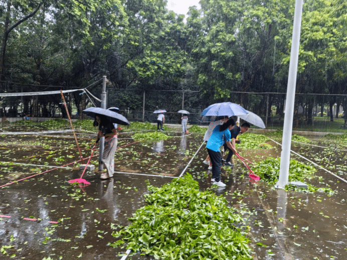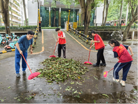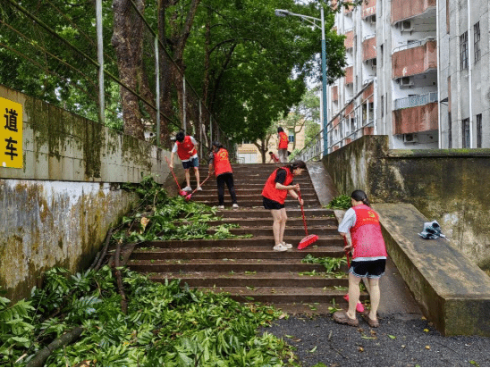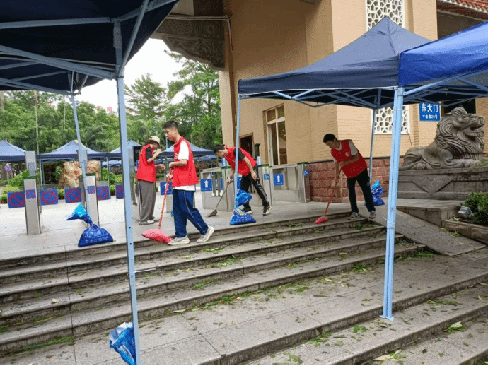 在学院领导的带领下,党支部师生党员及共青团员等近100人组成了志愿服务先锋队,积极配合学校后勤部门开展灾后抢修清障。在学校东大门、停车场、主校道、博学园、排球场、学生公寓、教工宿舍等地,师生志愿者们并肩作战,共同劳动,克服了工具不足、风雨天气等困难,迅速清理搬运断枝落叶、垃圾杂物,恢复校园整洁,充分发挥了基层党组织的战斗堡垒和党员的先锋模范作用,展现出了学院党组织的凝聚力、向心力和师生的精诚团结、勇于担当、坚强意志。