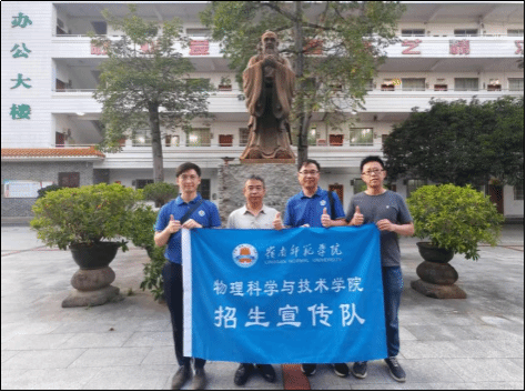 为全面做好招生宣传工作,加强校际联络,提升学校影响力和生源质量。6月21日至24日,物理科学与技术学院党委副书记梁伟民、专任教师车潇洋及辅导员黄楚帆一行赴韶关学院参加高校招生咨询会,同时前往韶关第八中学、曲江中学、田家炳中学、韶关市第一中学、仁化县仁化中学、南雄中学和南雄第一中学7所中学开展招生宣传与咨询。
