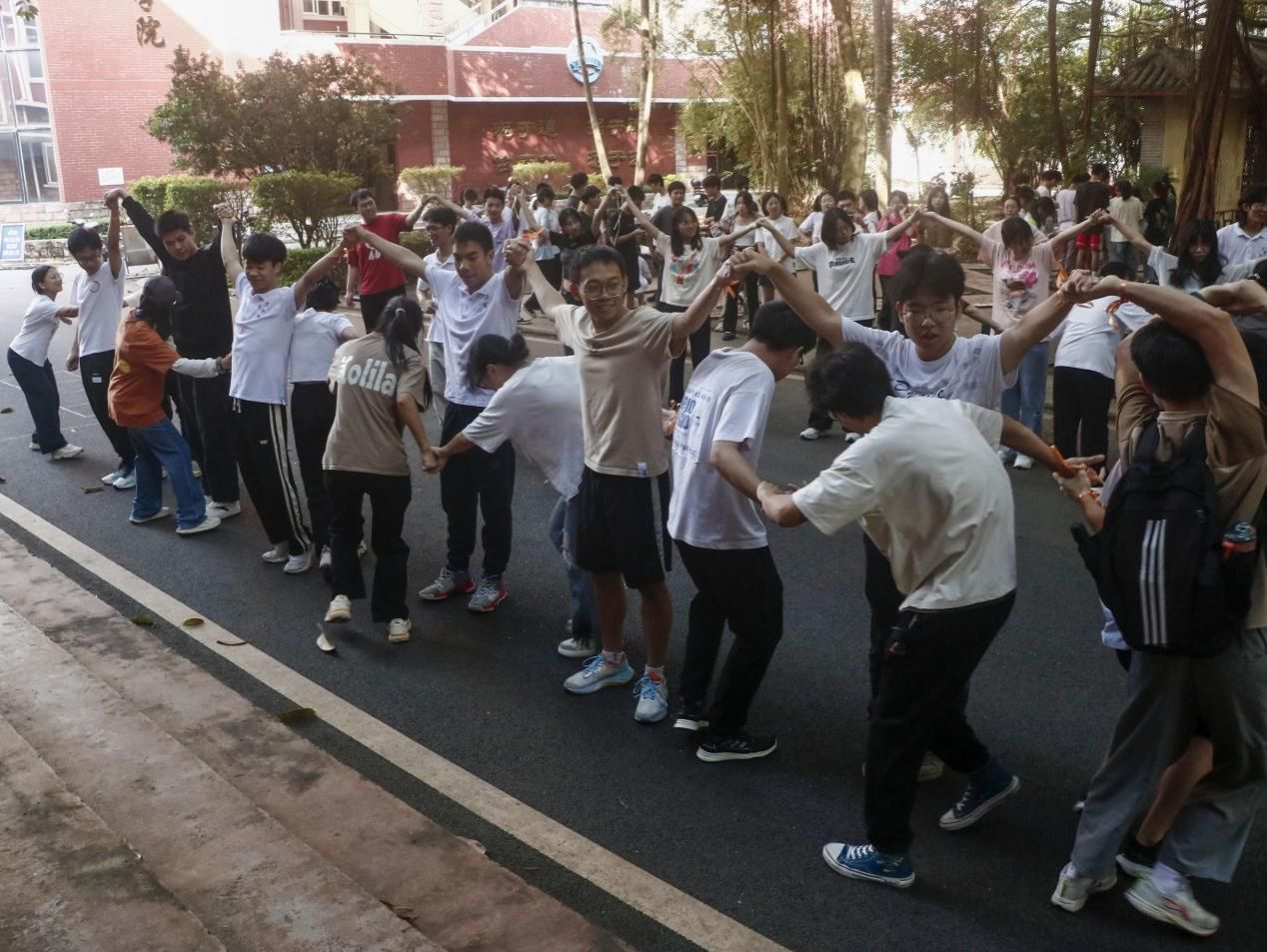 本次素拓活动设置了穿针引线、团队圣塔、环环相套、团队四子棋和摸石头过河等五个团体游戏环节,全体成员自行组队,发挥团结协作力量,争取佳绩。活动现场欢笑声、加油声、鼓掌声此起彼伏,展现出学生工作干部队伍良好的精神面貌。
