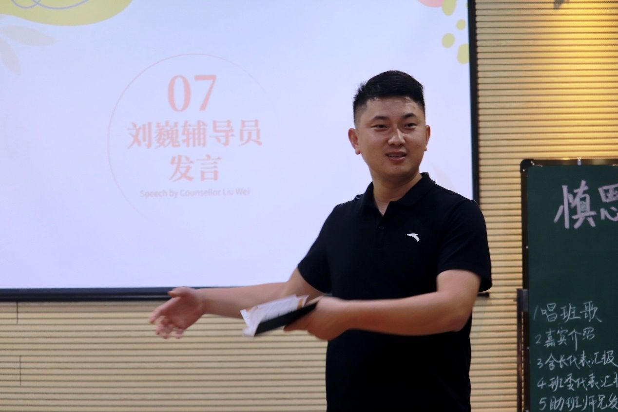 助班王骏鸿、朱旭鹏老师、刘巍老师和梁伟民副书记分别对班级建设作了指导和提出了建议。朱旭鹏老师在发言中强调,同学们应志存高远,立宏图大志,慎思慎行,争做有劲、有规矩、有精气神的奋斗青年,并希望同学们积极参与集体活动,搞好班级建设,培养班级凝聚力,使班级更上一层楼。刘巍老师强调了学生安全防范等方面,提出“非必要不出行,外出结伴而行”的建议。此外,他还希望同学们养成尊师重道的好习惯,做文明青年。梁伟民副书记对这次班会组织、班级团结、班级氛围活跃等方面进行了表扬,他指出班风学风是学生思想道德品质、学习精神与综合素质的重要体现,是学生成长的基础和前提。树立良好班风学风是为了让自身在更好的环境下学习、生活、成长。他希望同学不断提高自身素质,树立正确的学习风气,培养争先争优的精神。