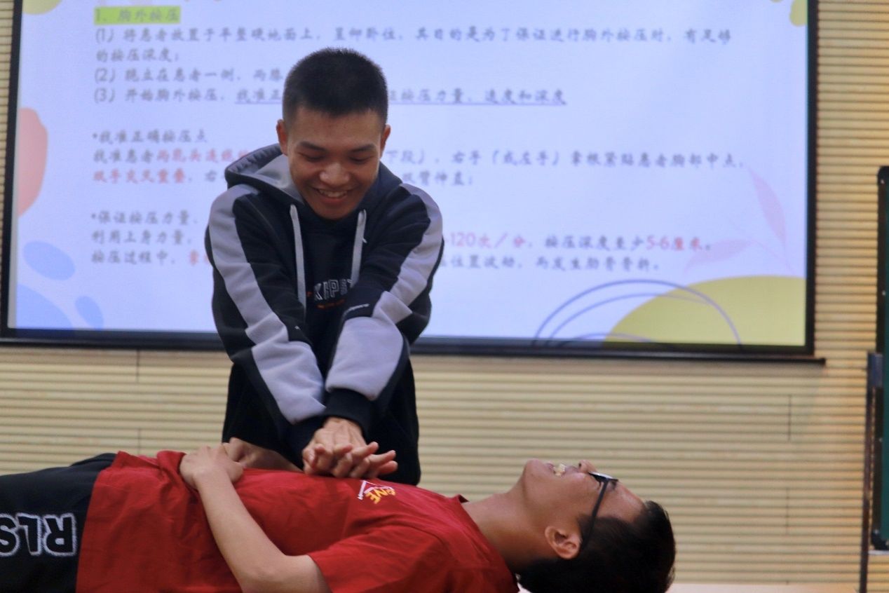 会上,刘姝涵通过精心准备的《你划我猜》小游戏、PPT展示及他人和自身经验等形式,对消防安全、财产安全、交通安全、防诈以及人身安全等方面进行了讲解,提高同学们的安全意识,并且提醒同学们现正处于各类流感高发期,希望同学们积极参与体育运动,增强体质,做好个人防护,预防流感。期间,特别邀请了两位同学对心肺复苏及海姆立克急救法操作进行演示,增强了同学们对急救知识及技能的了解,使同学们在遇到突发事件时可以把握“救命的黄金时刻”,有效做出反应,开展自救互救。