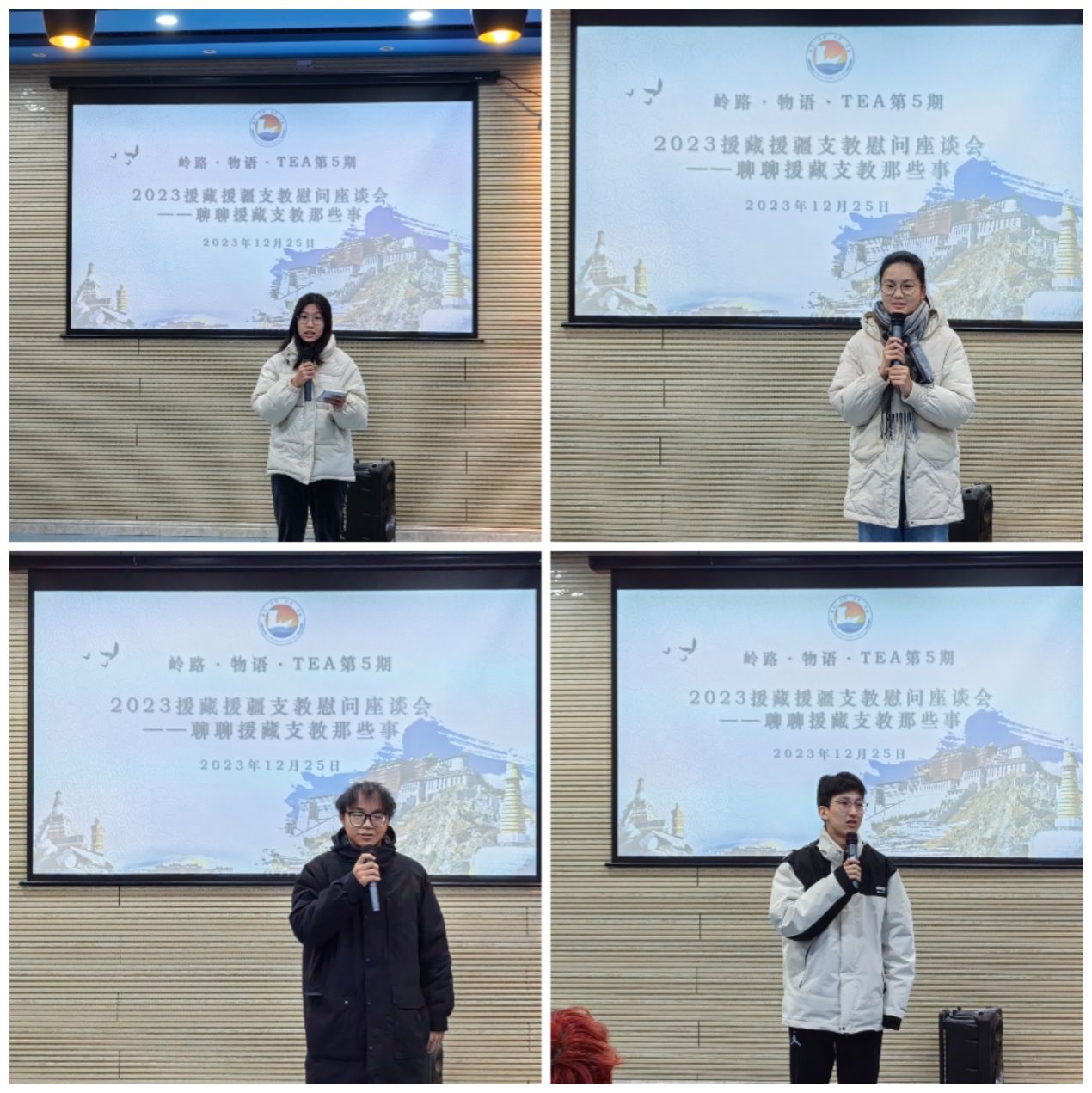 12月25日,物理学院举行路·物语·TEA【2023】第5期之聊聊援藏援疆那些事暨2023年援藏援疆支教慰问座谈会,学院党委书记陈碧琼,院长全军,副院长田春华,系主任阳喜元、周小燕老师出席座谈会,20级辅导员与各年级学生代表参加会议。学院党委副书记梁伟民主持会议。