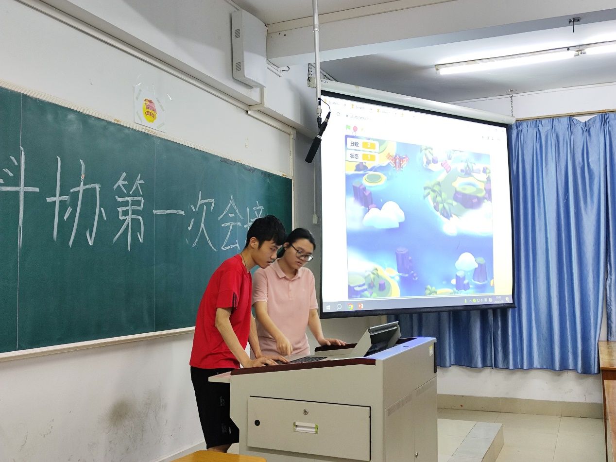活动伊始,活动部曾意对本次活动内容和活动流程进行简要介绍。技术部覃琬倩介绍Scratch游戏的操作及对Scratch编程基础知识的教学。