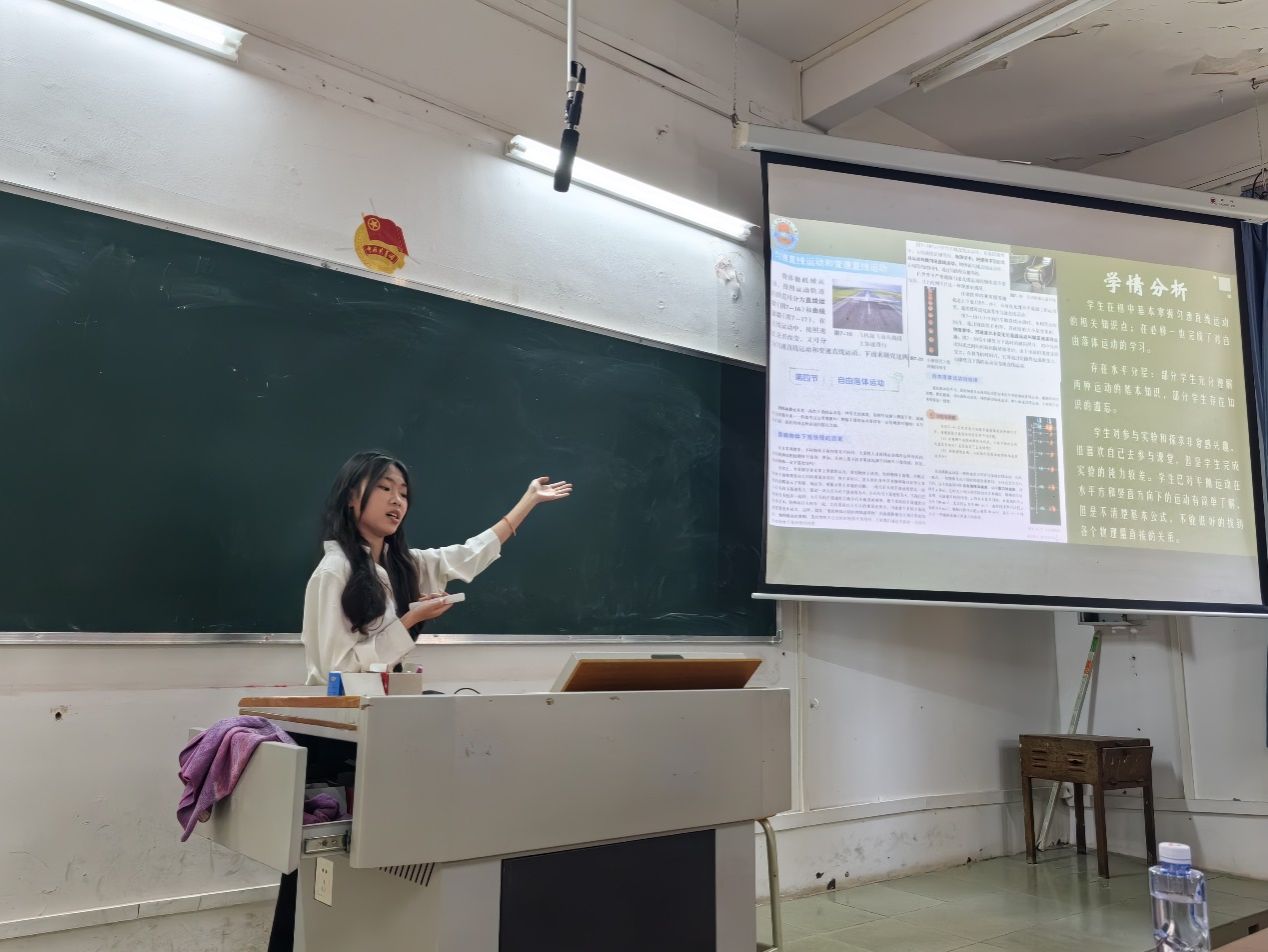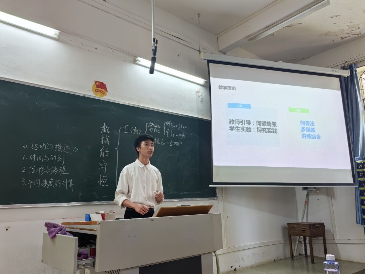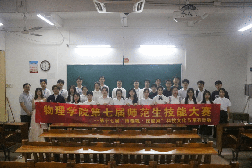 为进一步夯实师范生教学实践技能,4月13日,物理学院在教一107室开展第七届师范生技能大赛复赛。出席本次活动的有学院党委副书记梁伟民、辅导员刘巍、萧柏老师、团委工作人员以及由各班级进行初赛推荐的选手和各年级学生代表。