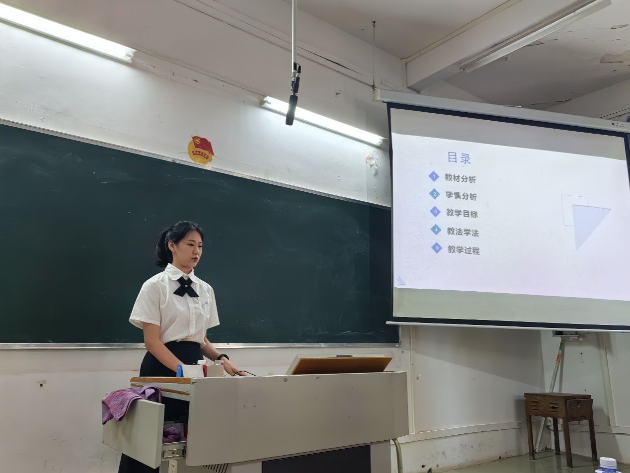 本次比赛环节设为说课和粉笔字板书。比赛过程中,选手们从教材分析、学情分析、教学方法、课堂设计、板书设计和教学反思等方面进行详细阐述,准备充足、仪态端庄、认真严谨,教学思路清晰,充分展现了我院师范生良好的专业素养。