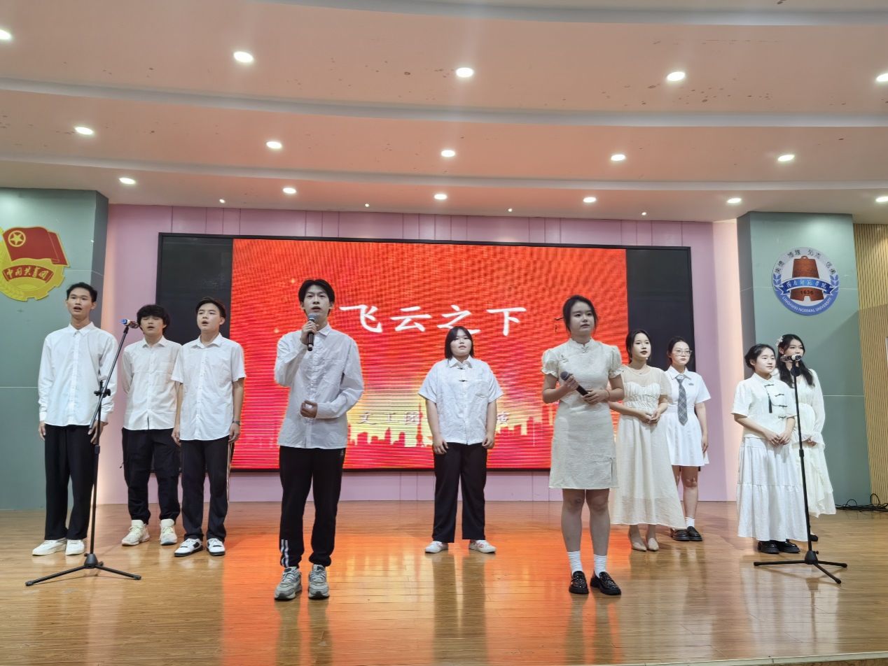大会伊始,学院声乐团的同学们为我们带来了一首《飞云之下》,歌声余音绕梁,极大调动了同学们的热情。