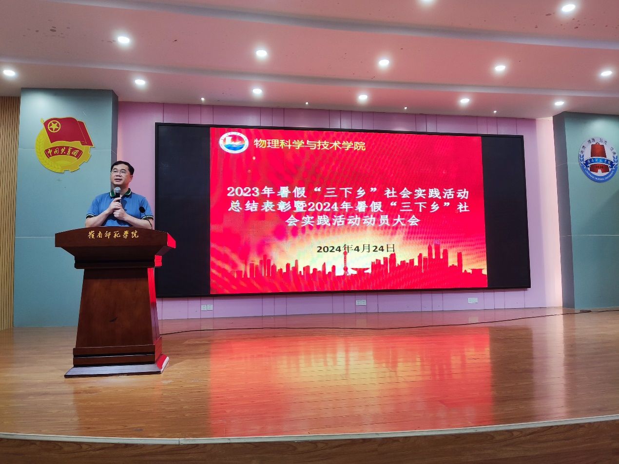 为充分调动同学们投身社会实践的积极性,增强青年学生的社会责任感和使命感,2024年4月24晚,物理学院在弘雷楼311教室举行了2023年暑假“三下乡”社会实践活动总结表彰暨2024年暑假“三下乡”社会实践活动动员大会。学院党委副书记梁伟民书记、辅导员以及22级、23级同学共同出席了本次活动。