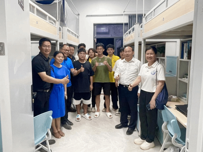 为深入了解2024级新生入学情况,倾听新生心声,帮助尽快融入大学生活。10月8日晚,学校校长阳爱民、学生处处长林志军、校团委书记林仲彦、学院党委书记陈碧琼和院长全军等一行深入新生宿舍,进行走访慰问活动,为新生送去问候与关怀。