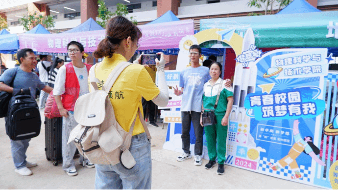 新生们在打卡点合影留念,许下对未来的期许与热爱。迎新志愿者们用相机定格学子的意气风发,定格家庭的殷切期许,定格青春的新起点。
