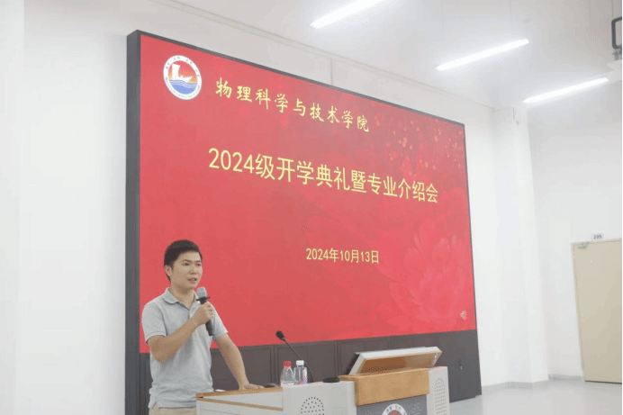 2024年10月13日上午,物理科学与技术学院于湖光校区集贤楼201室召开新生见面会暨专业介绍会,学院党政领导班子成员、各系(室)主任、辅导员、2024级班主任和助理班主任、全体新生等参加,会议由学院党委副书记梁伟民主持。