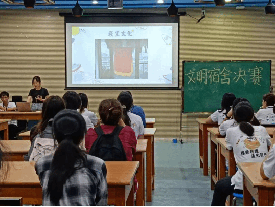 在评选过程中,参评各宿舍队伍代表分别就宿舍成员、宿舍学风、宿舍文化等方面进行了展示。宿舍成员遵守学生公寓管理各项规定,不私藏违规电器。共同制卫生制度,并自觉遵守,按时打扫卫生,保持宿舍整洁有序,为维护良好的宿舍环境贡献自己的一份力量。学习上,舍友之间相互学习,相互勉励,共同进步,斩获许多奖项。生活上,舍友团结友爱,互相记录彼此青春的模样,经常一起进行团建活动。