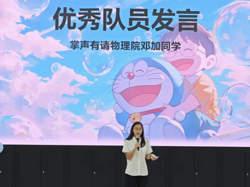 活动伊始,计智院的谢雨帆同学作为优秀队员代表上台发言。谢雨帆同学讲述了自己大一时的亲身经历,她认为,每个人都拥有无限的潜力,也希望自己作为引领队员能在多方面帮助引领对象,并表达了对学弟学妹的期望,衷心祝愿他们的未来会越来越好。