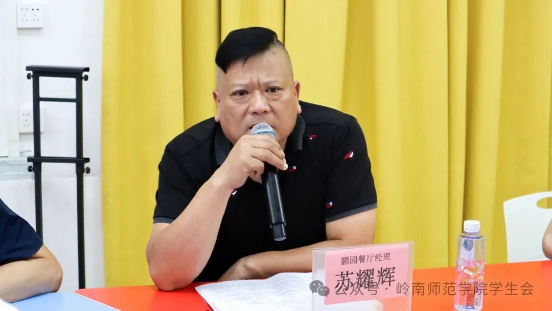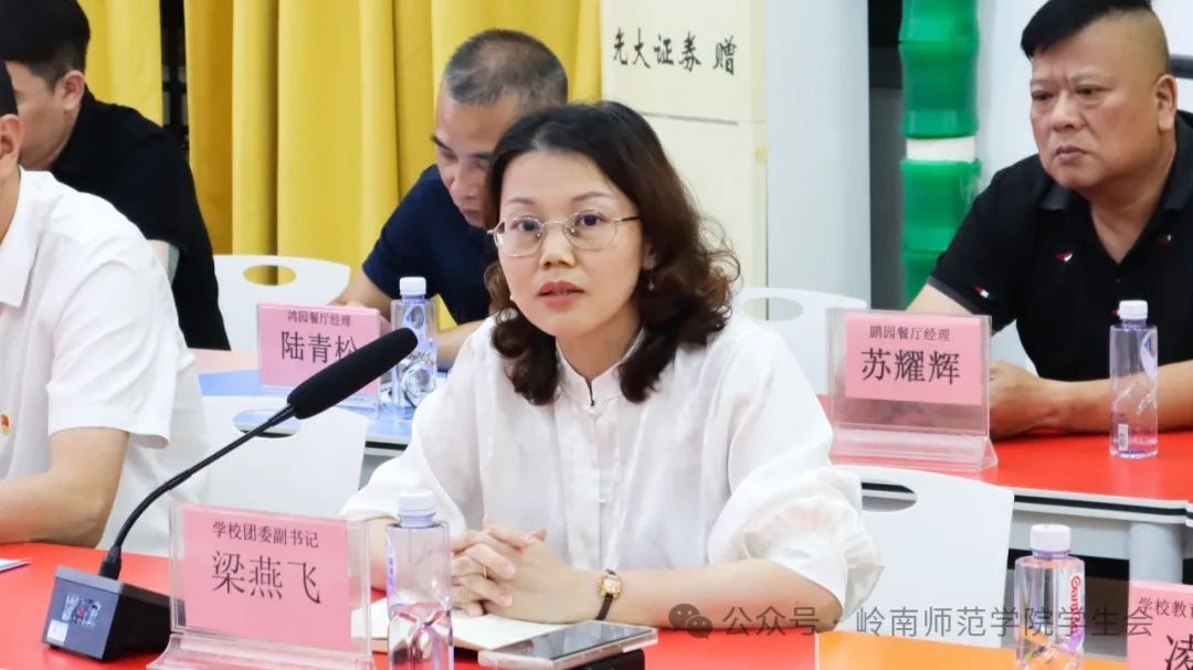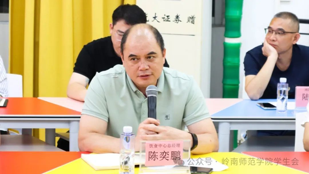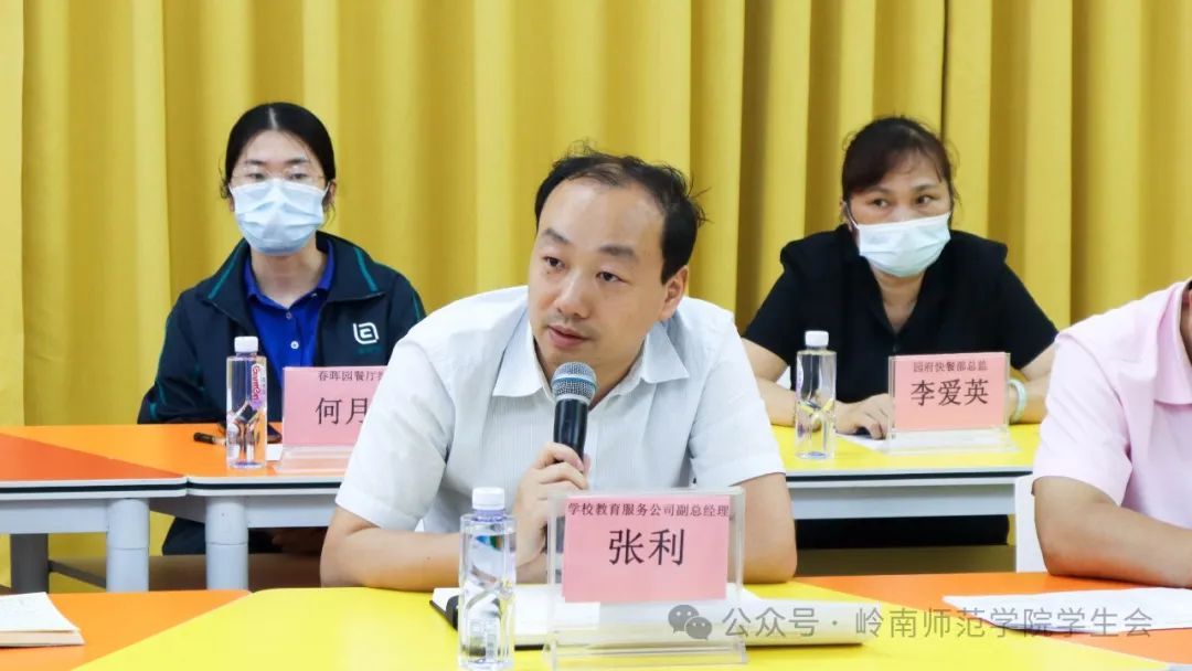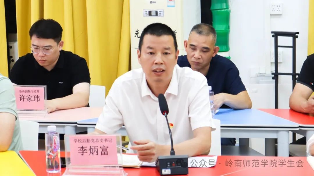 4月15日,岭南师范学院学生会在鸿园411室举行与后勤管理处面对面座谈会,出席座谈会的有学校后勤管理处党总支书记李炳富,学校团委副书记梁燕飞,饮食中心总经理陈奕鹏、教育服务公司总经理凌贤郅、各食堂楼层经理、水厂和超市负责人、校院两级学生会权益服务部工作人员及学生代表等。