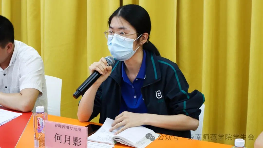 梁燕飞表示,校学生会定期举行后勤服务部门与学生面对面座谈会,旨在积极发挥学生会桥梁纽带的作用,搭建学校职能部门与学生之间沟通平台,落实学生会全心全意为同学服务的宗旨。她希望同学们大胆反映问题,提出正向建议,后勤部门积极听取同学们意见建议,提升服务质量,共同营造良好的校园生活环境。同时也呼吁同学们从自身做起,带动身边更多的同学做到光盘行动,以此更好地减少食堂里异味重、蚊虫多等问题。
