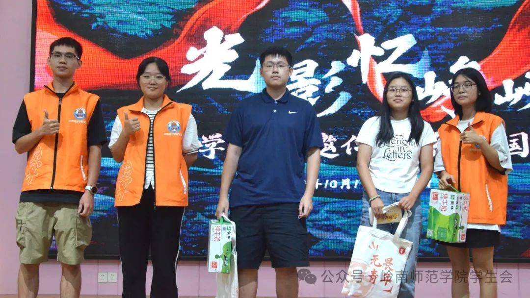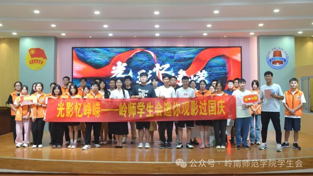 观影虽已结束 ,但互动惊喜接连不断校学生会为在场的岭师er们精心布置抽奖环节呈上独家周边文创和神秘礼品在同学们的每一寸心田都撒满暖阳。手握着专属电影票,在场的岭师er们,用热情温暖集体,用欢笑定格此刻,留下一张欢度金秋国庆的合影。
