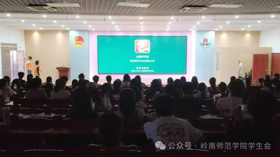 晴天阴天雨天都不如离国庆观影更近一天。岭师er们满心欢喜踏着初秋的气息手握精心设计的电影票有序地进入会场。座无虚席的第三教学楼311室、兴致勃勃的岭师er们沉浸在欢欣喜悦的氛围中,等待着灯光熄灭。