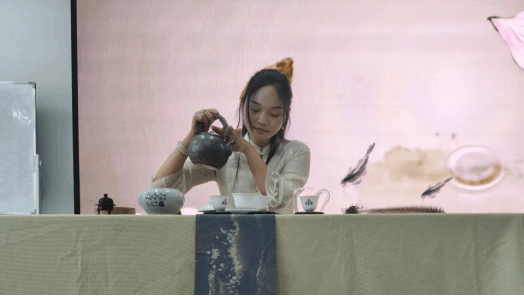在互动交流环节,有同学问道:“如何判断一杯茶是好茶?”陈圆圆笑着回应:从专业角度而言,会结合茶叶本身特性,从色、香、味及饮用体感多维度考量,但从通俗层面来讲,就是能让人感受到舒服并接纳的茶,便是好茶。陈圆圆接着强调,学习茶道能让人在泡茶、品茶的过程中沉淀内心,培养专注力和耐心。而且在学习过程中,还能了解到很多关于茶叶、茶具、茶艺等方面的知识,丰富自己的文化内涵。同时,茶道也是一种社交方式,通过茶会等活动,可以结识志同道合的朋友,拓展自己的社交圈子。