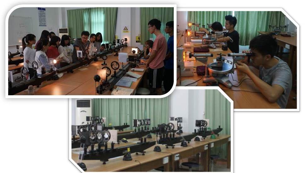 主要教学仪器设备:阿贝折射仪、读数显微镜、分光计、CCD光强测试仪、迈克尔逊干涉仪、偏振光实验仪、平面光栅单色仪、平行光管、普朗克常数测定仪、氦氖激光器、低压钠光灯等。